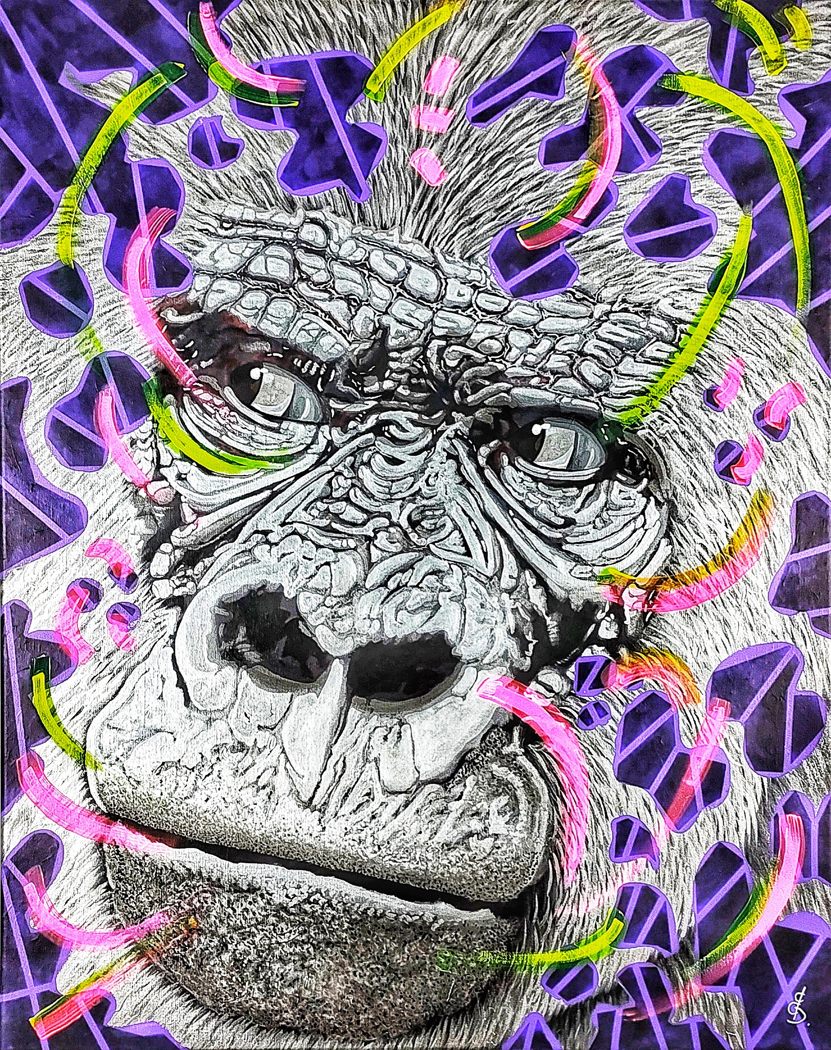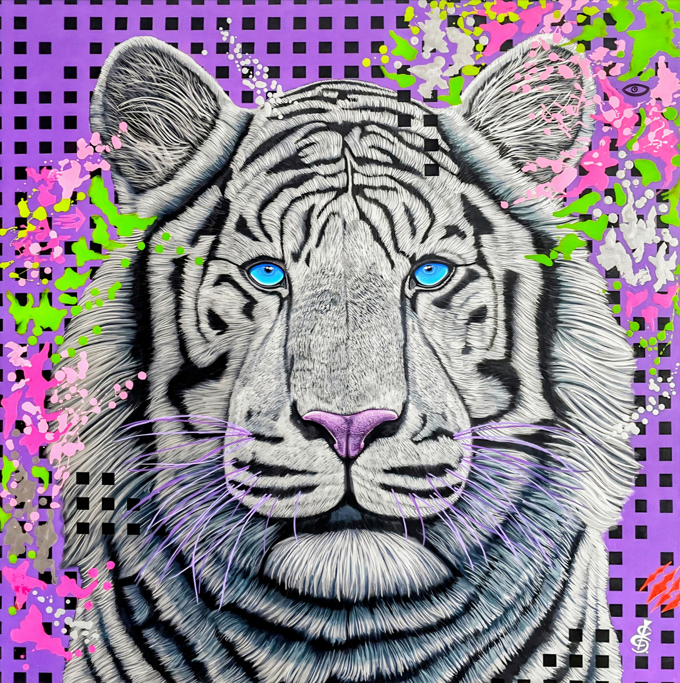 Je peins les animaux comme des icônes pop selon le principe du "Et si... ?" en utilisant des couleurs explosives et irréelles qui questionne notre regard sur le vivant.